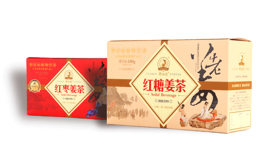 葛仙堂姜茶系列產品以羅浮山種植藥用小黃姜為主要原料之一,特別選用道地原料:寧夏中衛枸杞、新疆阿拉爾小灰棗、三年以上新會陳皮、廣東羅定肉桂等,君臣佐使,科學配比,創新運用真空負壓低溫提取+循環升溫干燥工藝精制而成,使產品品質及效果得到保證。